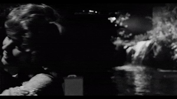 Ora sono su un motoscafo che sfreccia su un lago, il braccio di lui intorno a lei. La barca fa curve strette, quasi ribaltandosi. Dietro di loro, dall'altra parte del lago, gli edifici guardano. Una serie di piccole luci attraversa il cielo e un cane appare sulla riva, mentre la barca si allontana rombando, rompendo il silenzio della notte.