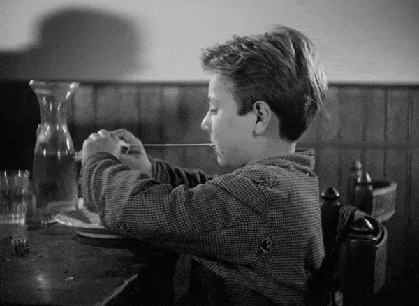 Adriana is eating a mozzarella sandwich: she stretches out the cheese with her teeth, like Bruno did in Bicycle Thieves.