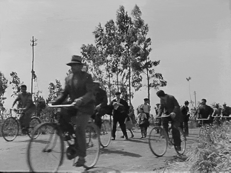 With the ding-ding of their bells, cyclists hurry past in a long line, craning their necks to look at the peasants from the South.