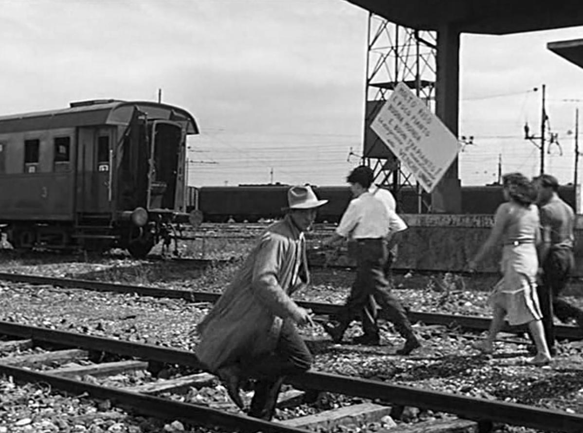 Il treno passa e l'agente si mette all'inseguimento di Granata, seguito dai mondariso, alcuni dei quali con le valigie in mano. Uno di loro ha in mano un cartello con un messaggio di saluto dalla Fiat Lingotto.