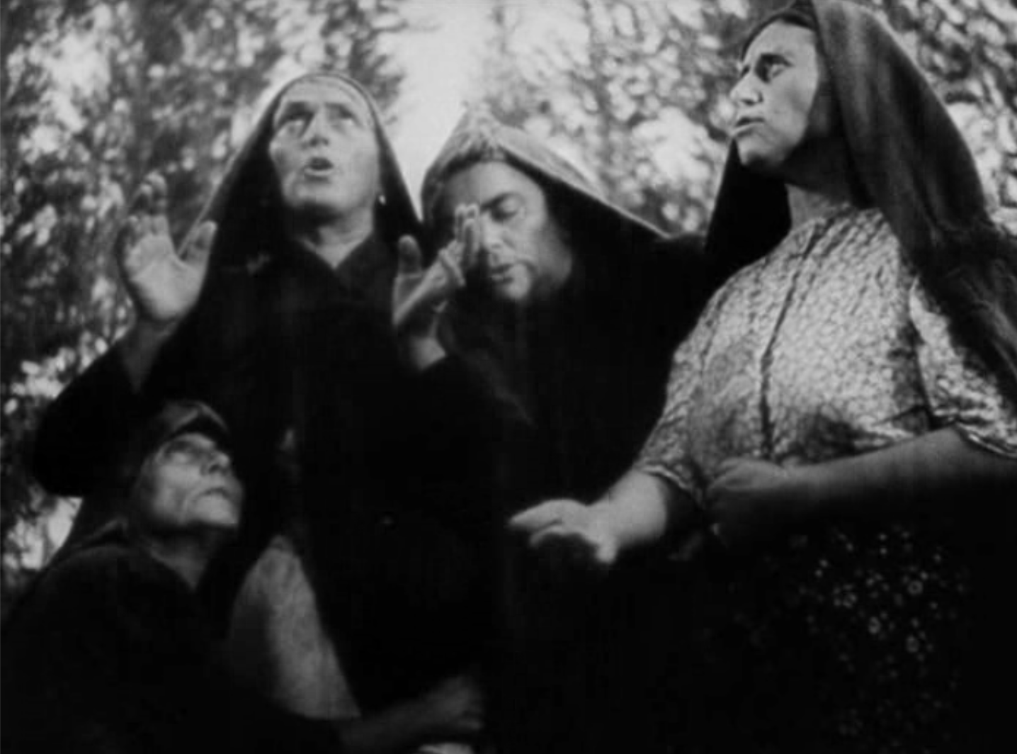 Francesca walks with Gabriella collapsed in her arms, followed by the wailing women. In the center of the frame, Silvana runs desperately, howling.