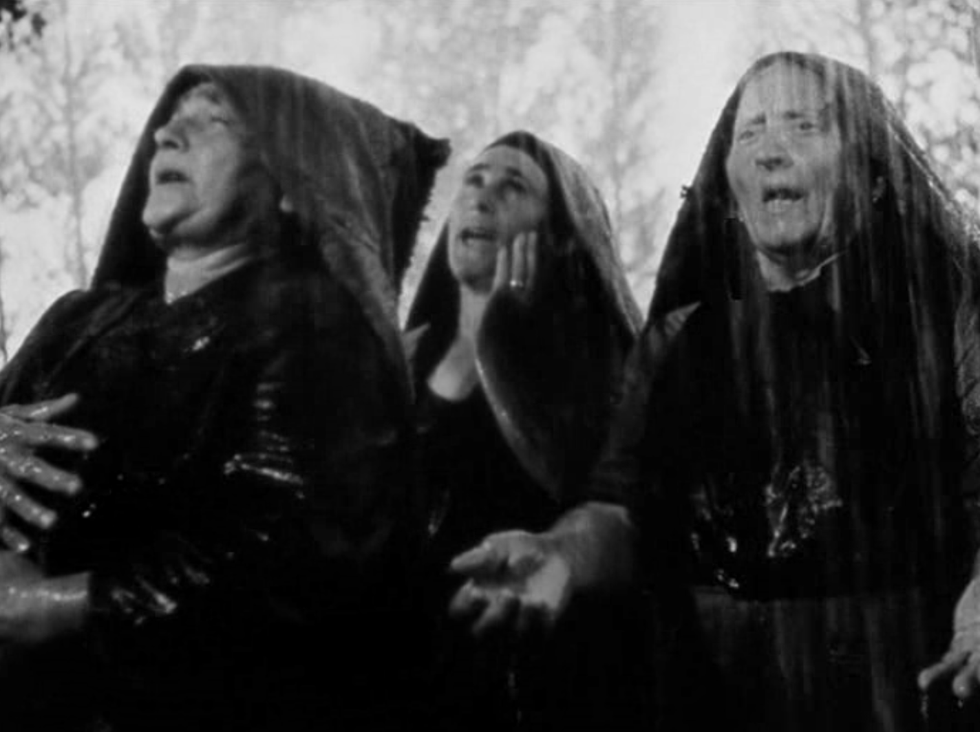 A piedi nudi, con il capo coperto, le lavoratrici rispondono in coro, sotto la pioggia incessante: